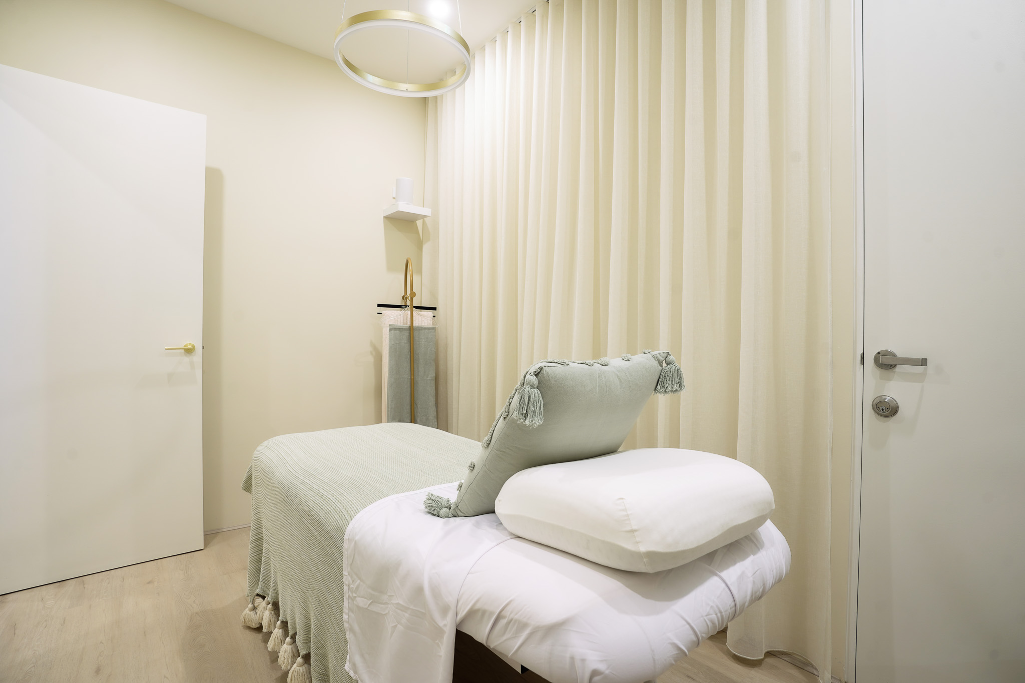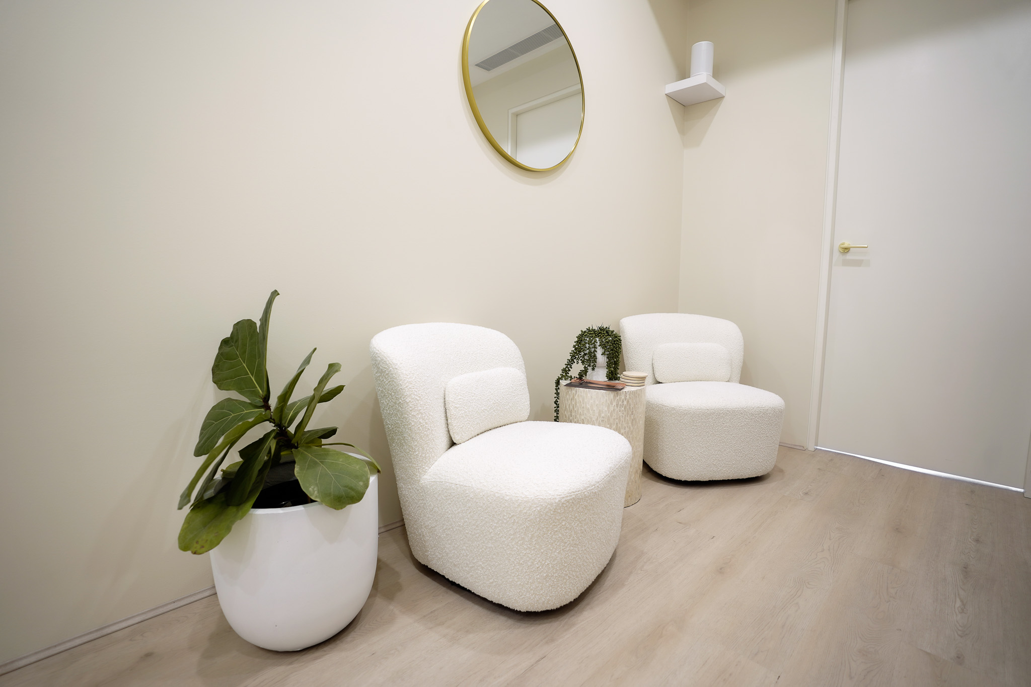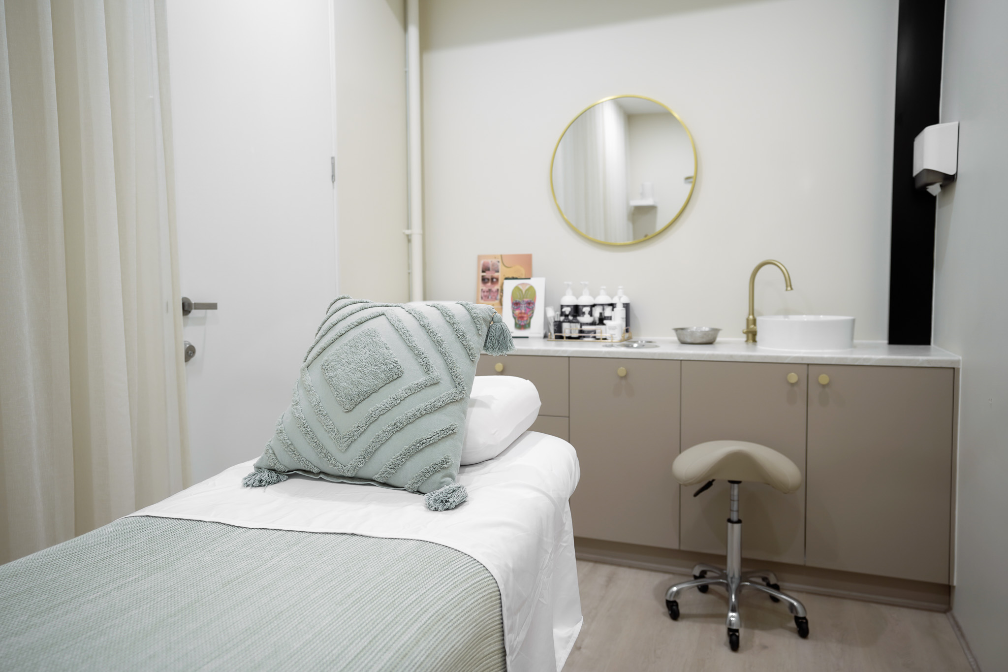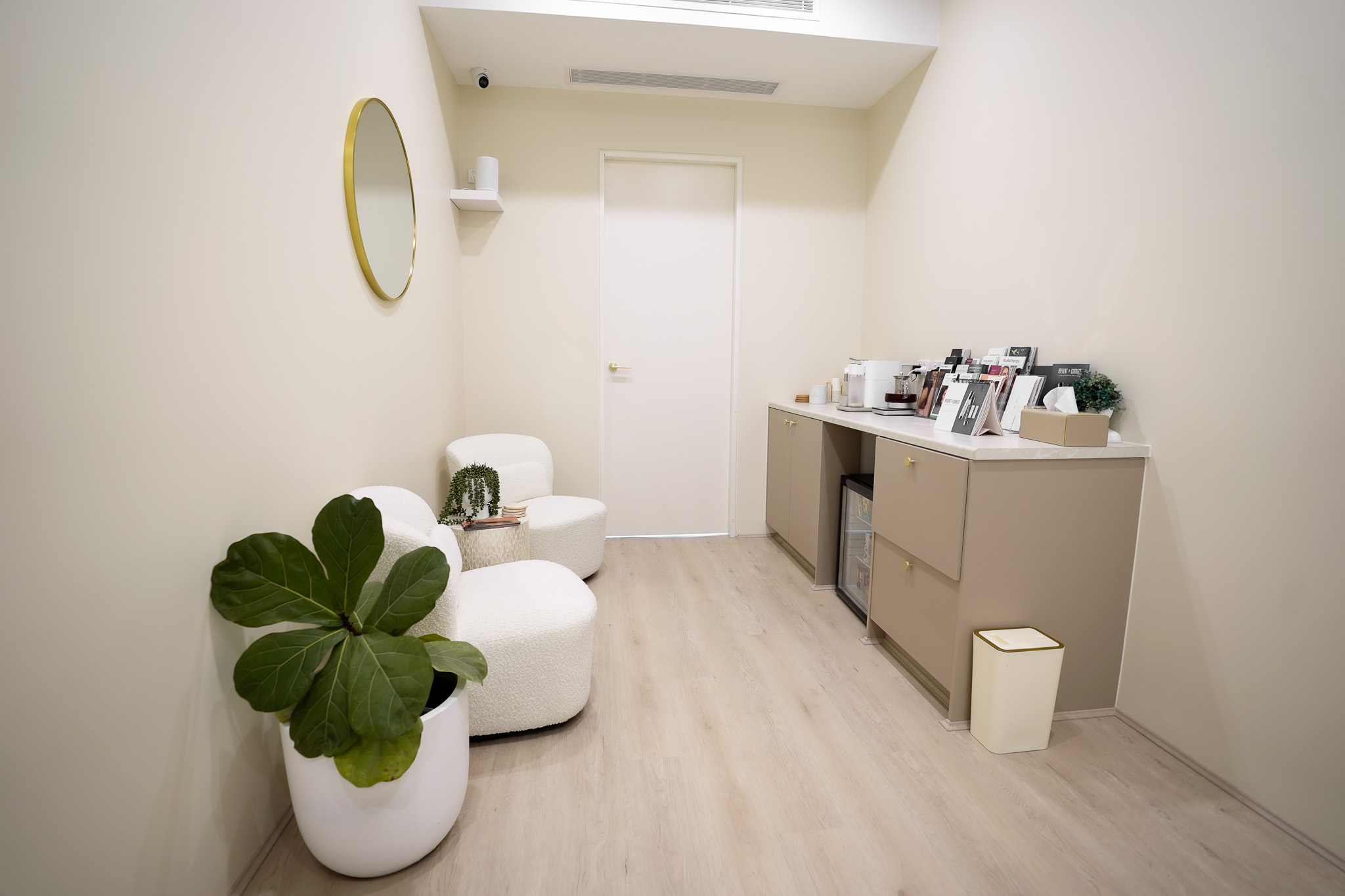 Summer Hill fitout for Elysium Aesthetics transformed an open space into a serene, functional clinic. We created three private treatment rooms, added air conditioning for comfort, custom joinery for coffee and tea service, and soft furnishings to bring warmth and calm to the space.